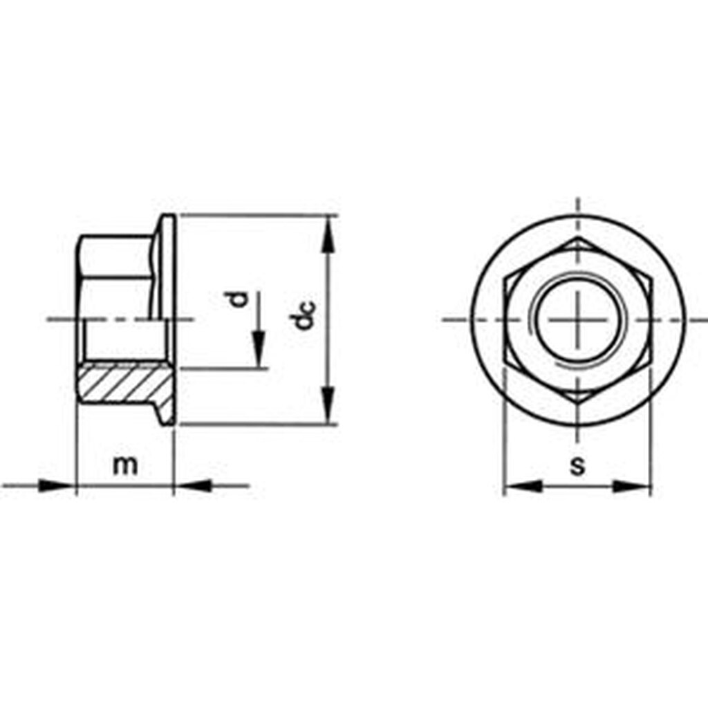 Nut - Flange - Stainless Steel - A2 - 12mm