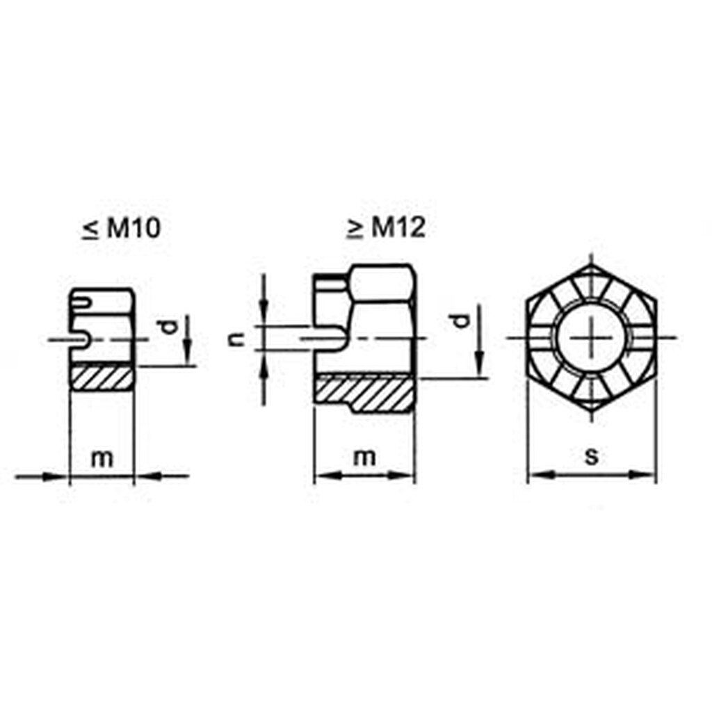 Nut - Castle - Stainless Steel - A2 - 10mm